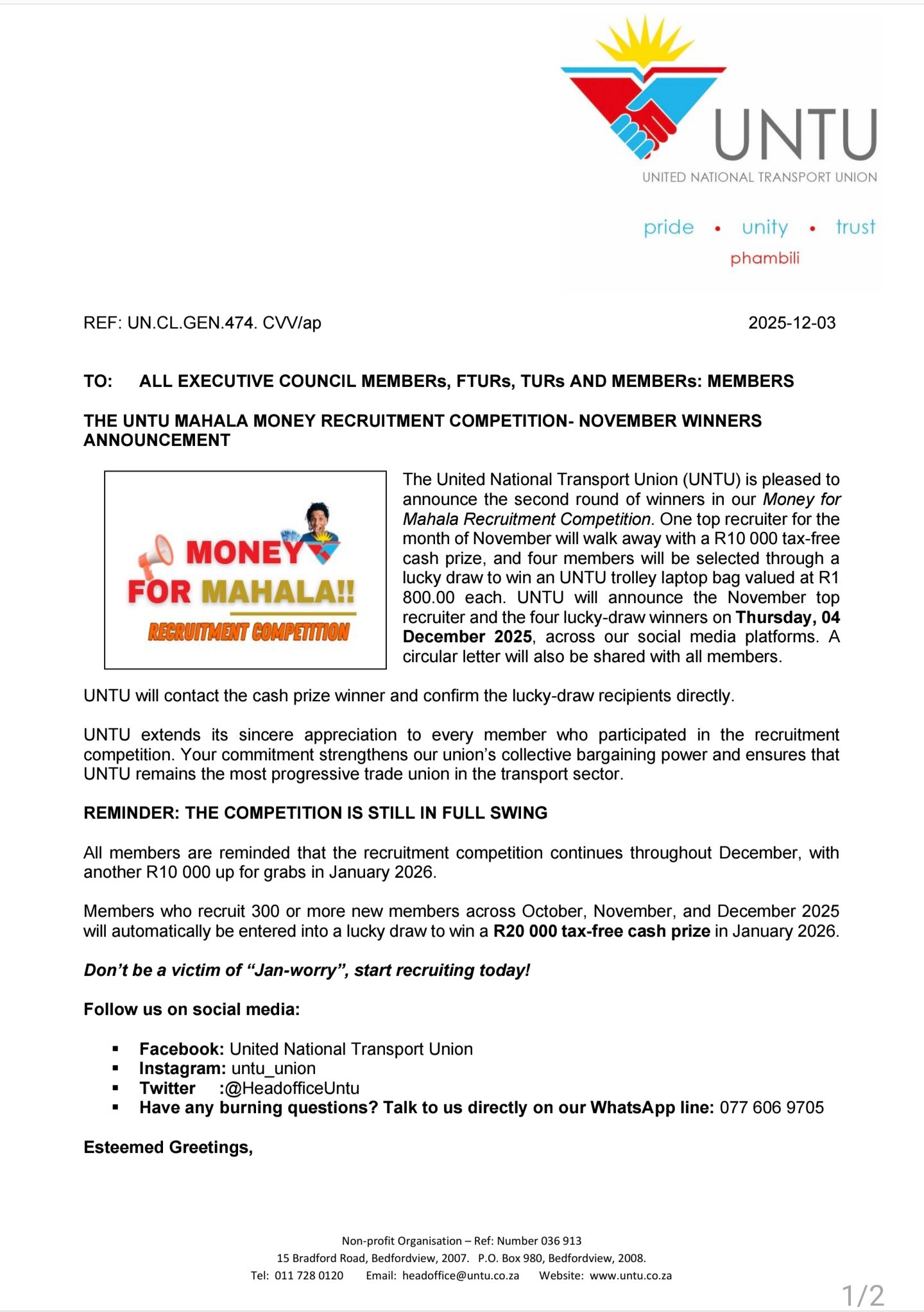 General 🚨UNTU MONEY FOR MAHALA RECRUITMENT COMPETITION: NOVEMBER WINNERS TO BE ANNOUNCED2025-12-03in General 0 Comments 0 Likes