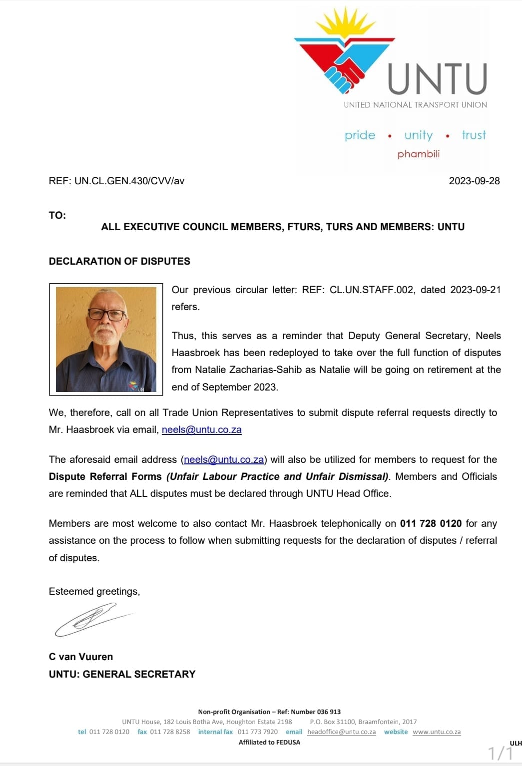 Phone: 011 728 0120/1/2/3 Email: headoffice@untu.co.za | enquiries@untu.co.za