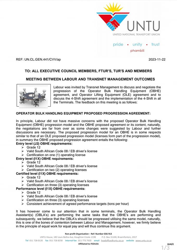 General FEEDBACK: MEETING BETWEEN LABOUR AND TRANSNET MANAGEMENT OUTCOME2023-11-23in General 0 Comments 0 Likes