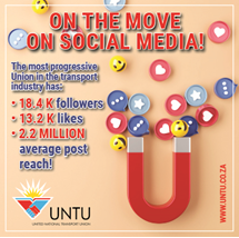 The social media pages of the United National Transport Union (UNTU), the most progressive union in the transport industry, is growing from pillar to post.