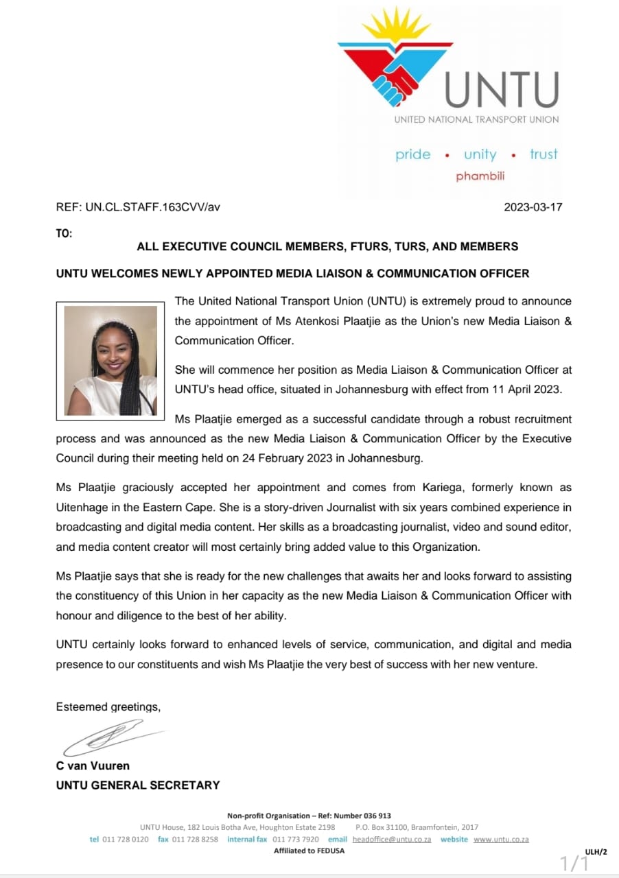 General UNTU WELCOMES NEWLY APPOINTED MEDIA LIAISON & COMMUNICATION OFFICER2023-03-17in General 0 Comments 0 Likes