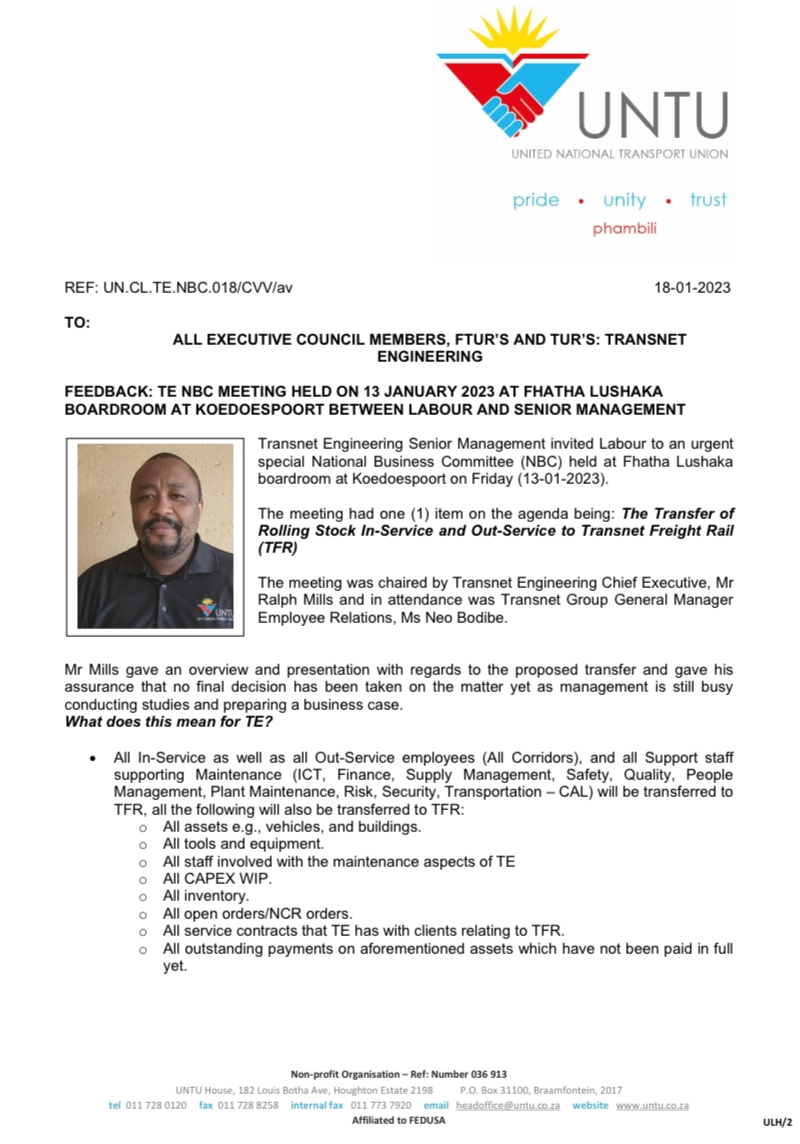 FEEDBACK: TE NBC MEETING HELD ON 13 JANUARY 2023 AT FHATHA LUSHAKA BOARDROOM AT KOEDOESPOORT BETWEEN LABOUR AND SENIOR MANAGEMENT