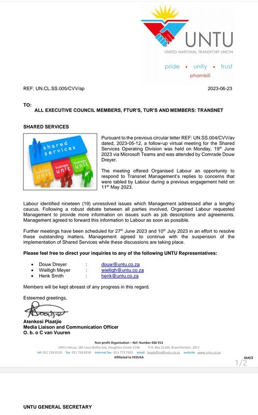 Phone: 011 728 0120/1/2/3 Email: headoffice@untu.co.za | enquiries@untu.co.za
