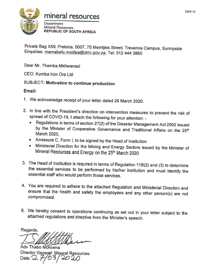 Steve Harris, General Secretary of UNTU, says the Union fails to see how the reopening and operations of the Kumba Iron Ore Mine, with a direct result on the reopening of the railway line and all other Transnet operations between Sishen and Saldanha, can be considered as essential services necessary to combat the COVID-19 pandemic.